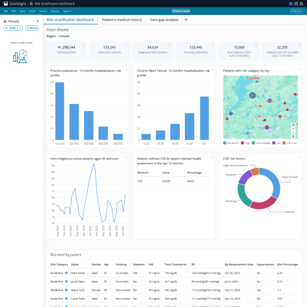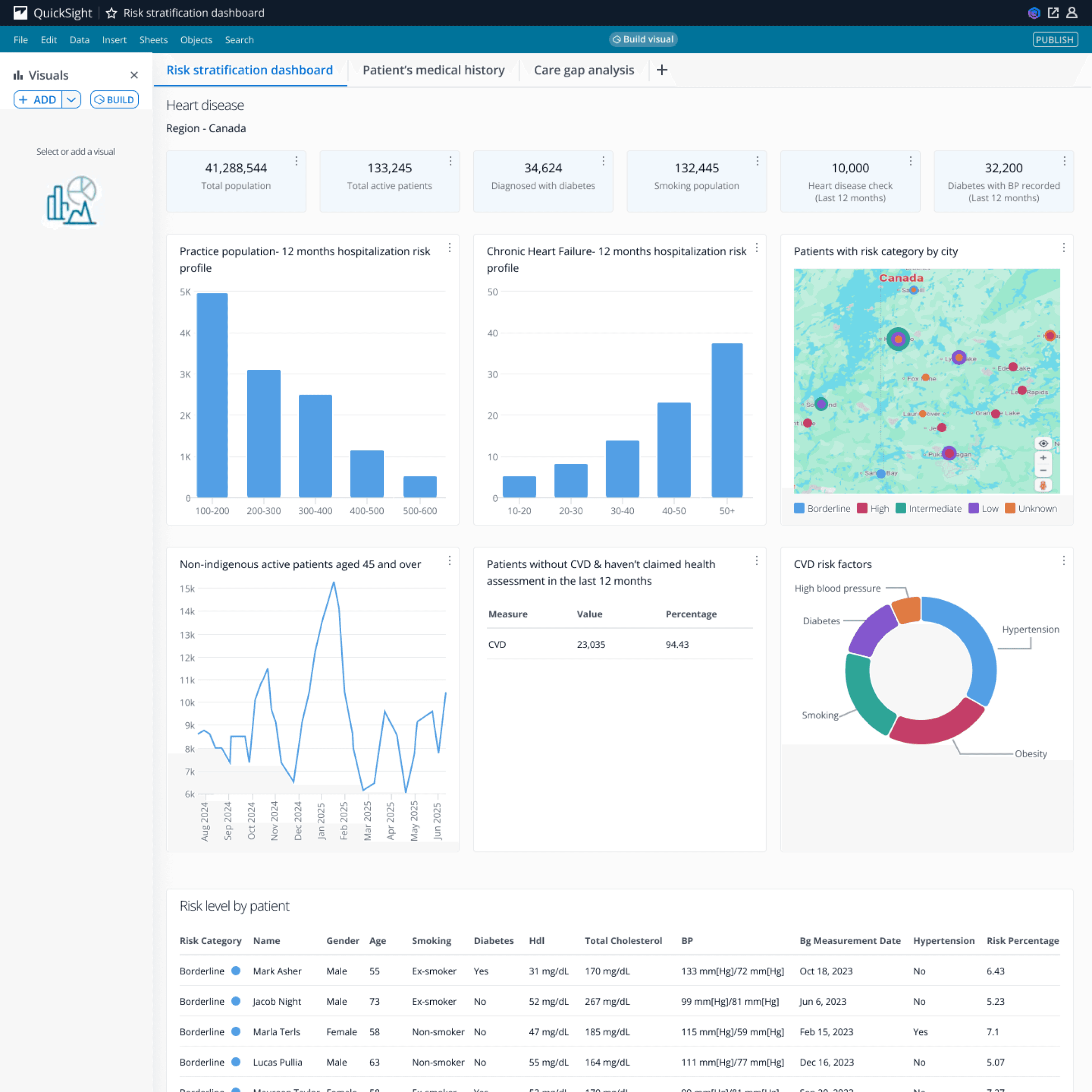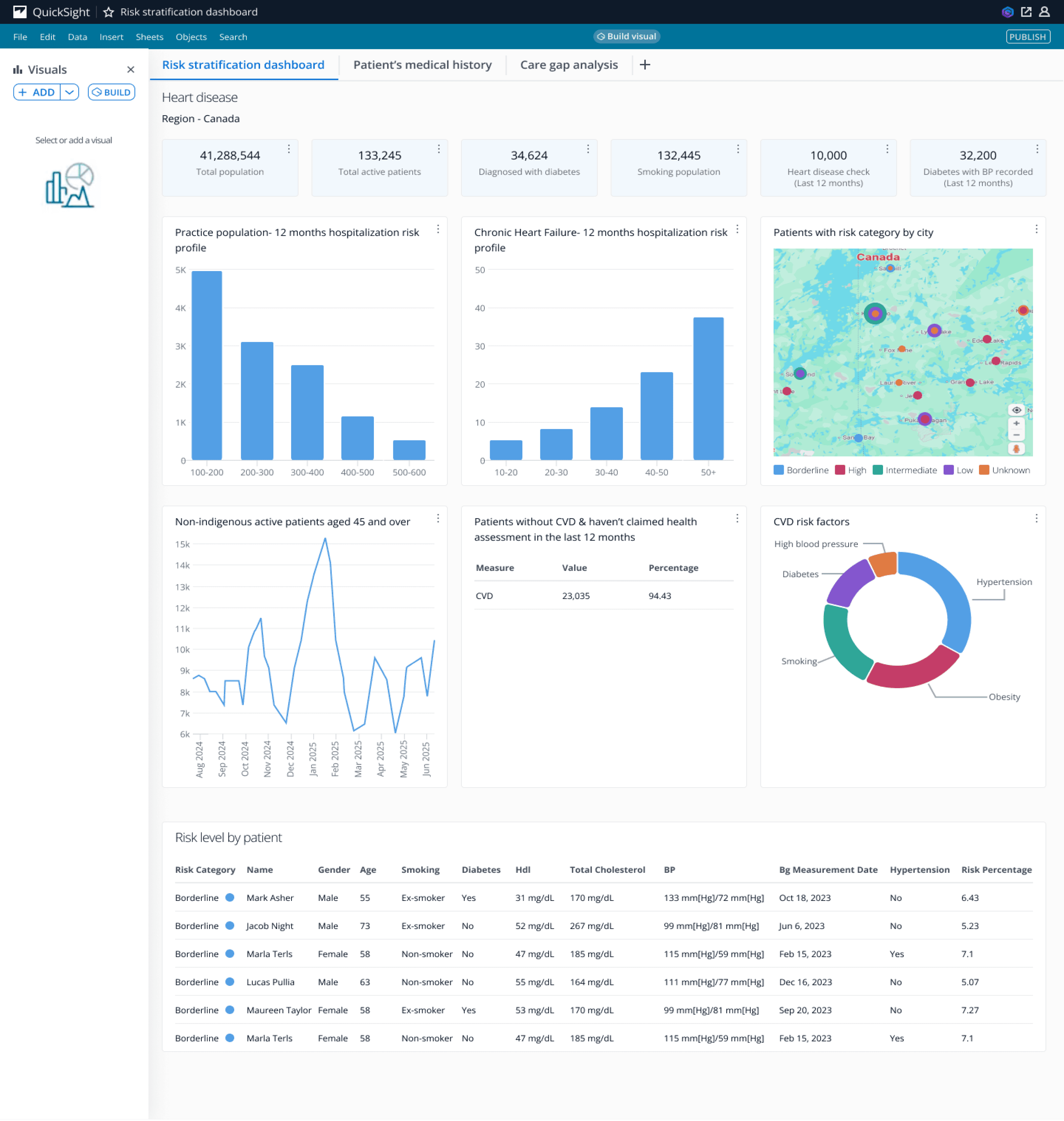 After clicking on use in analysis button, we can view the pre-built template of the risk stratification dashboard which includes relevant data for the user as the dashboard is specific to a particular region.