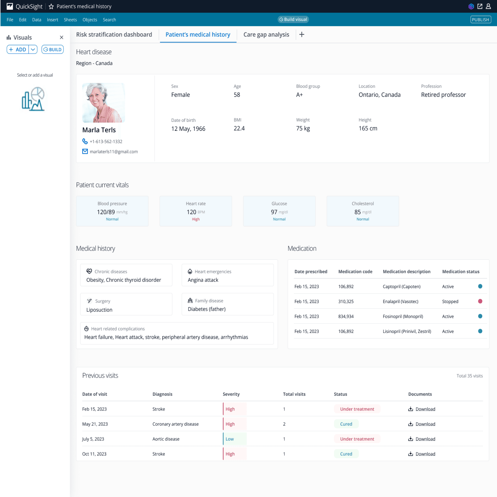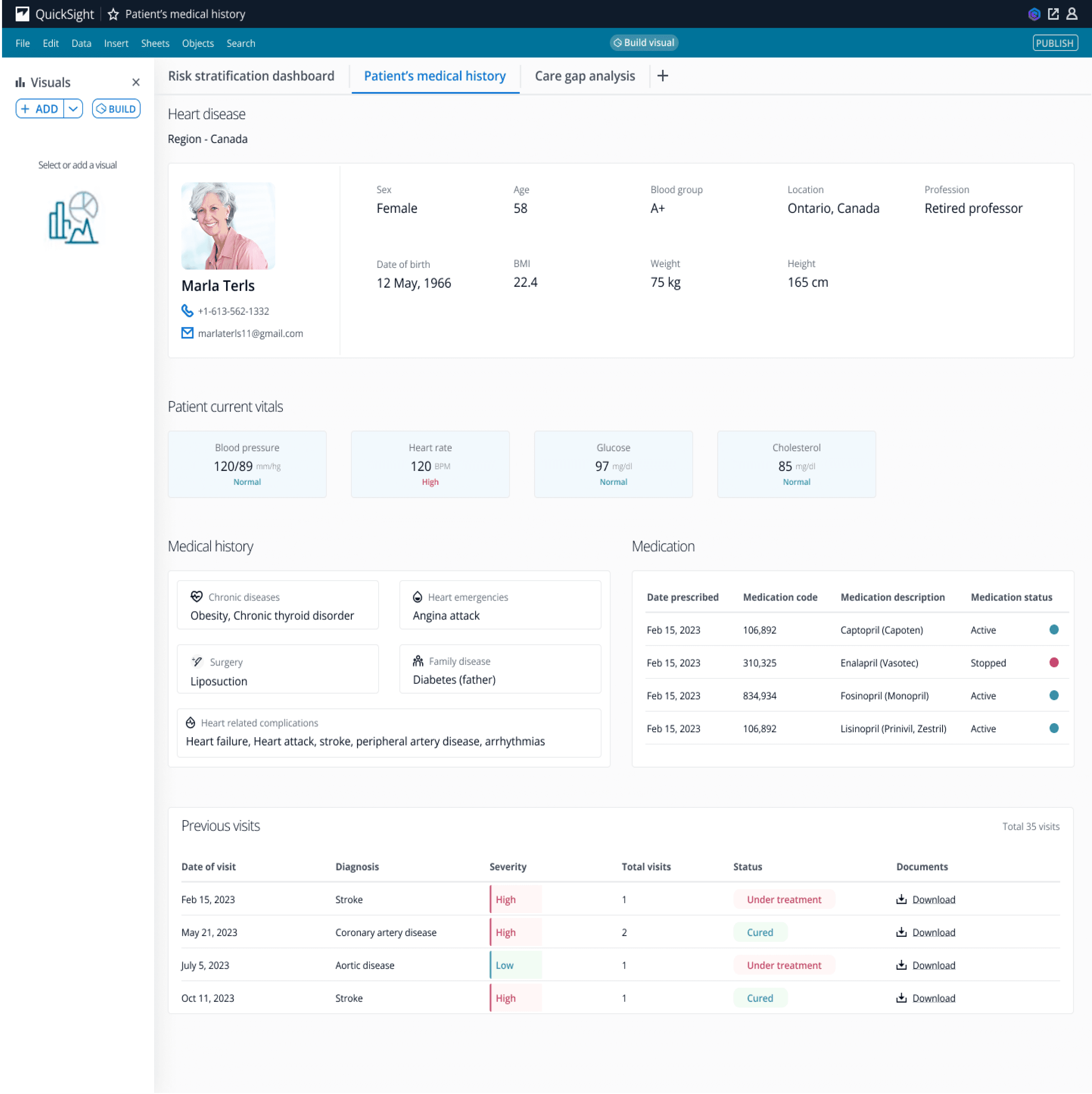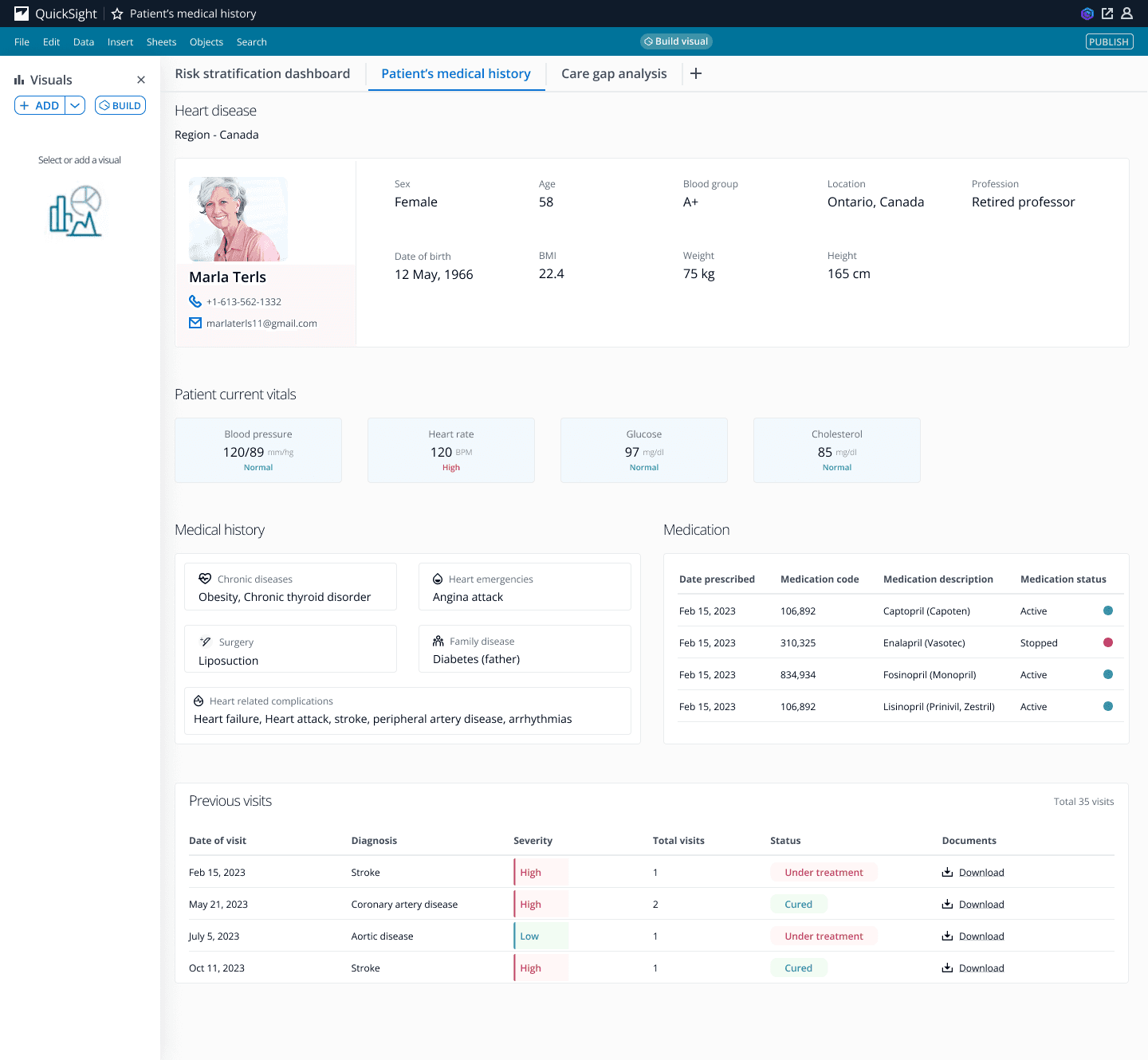 The second pre-built section includes all the info about the patient like their blood group, age, BMI, etc.
