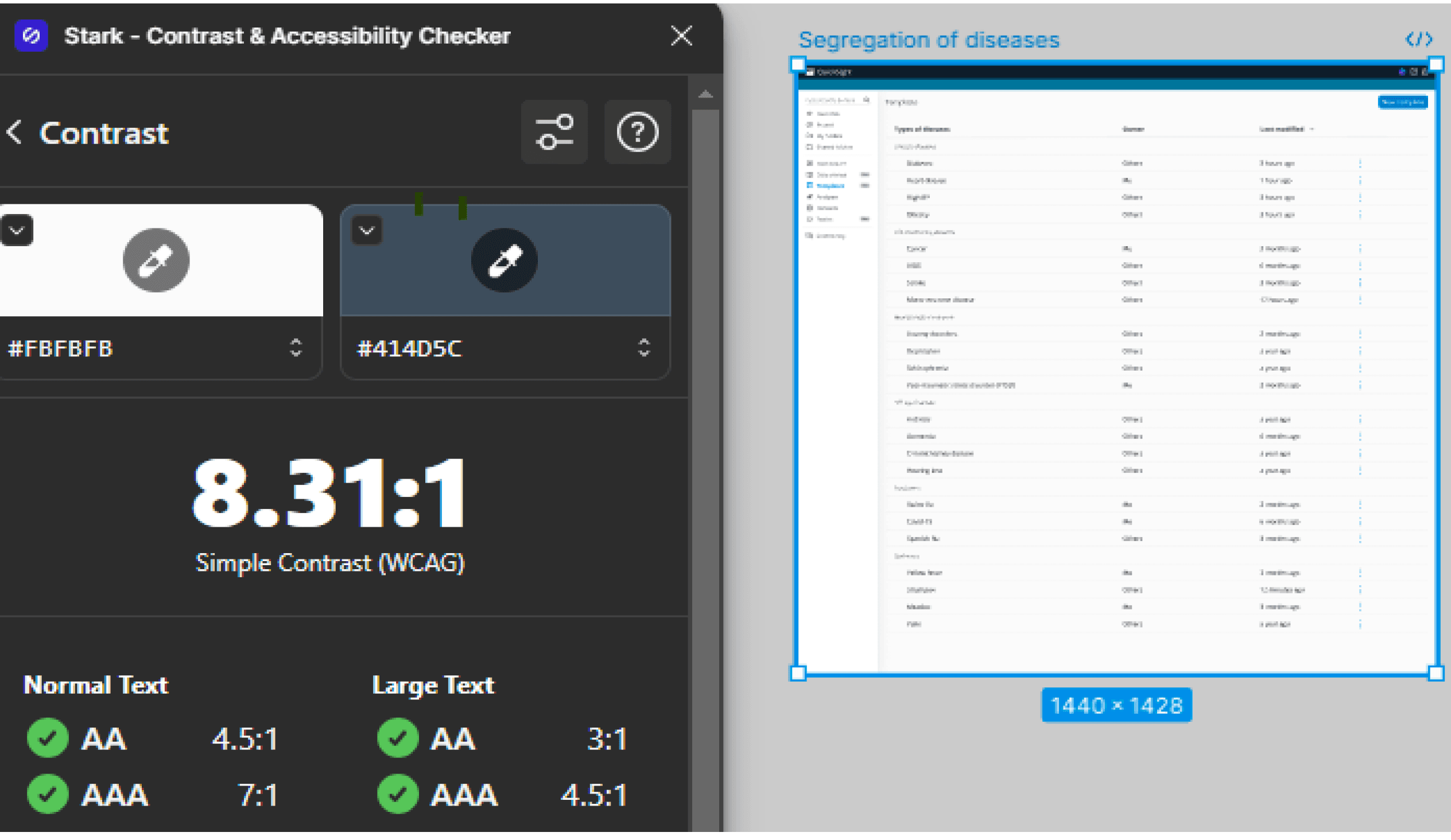 Found a plugin on figma which does contrast and accessibility check - Stark
