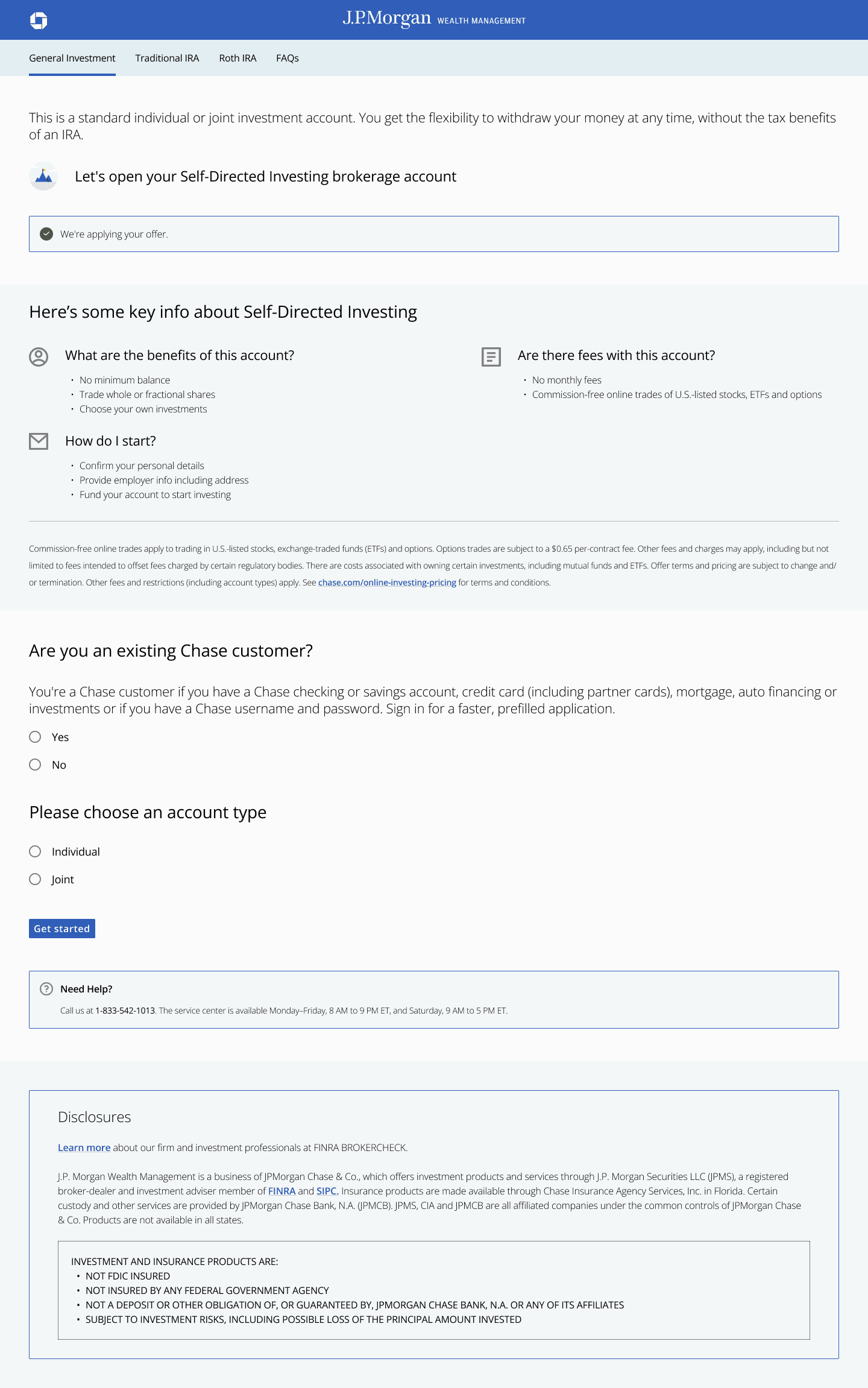 The end goal of the Self-Directed Investing site is to convince the user to open an account, for which the UI should be simple, intuitive and easy to use.