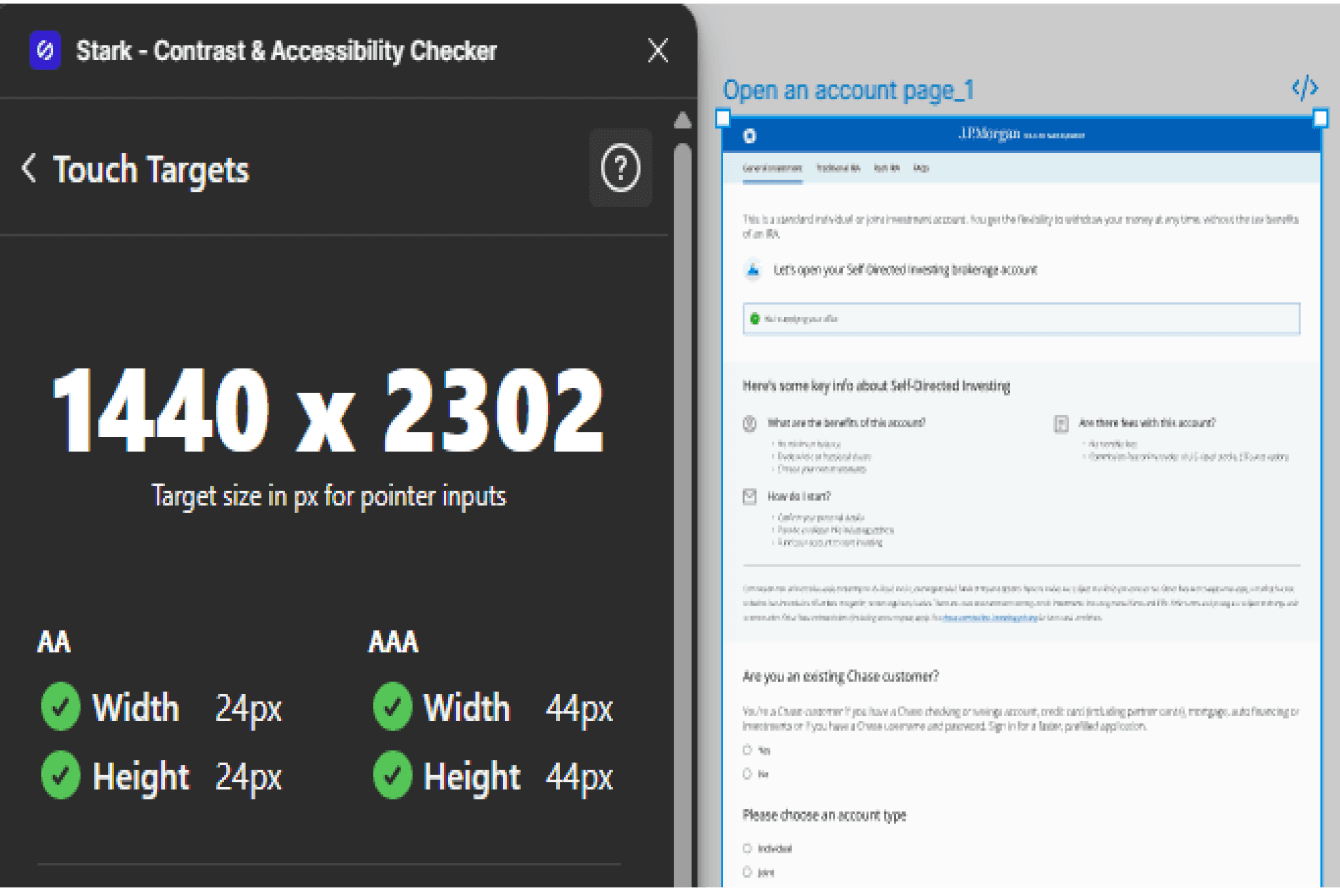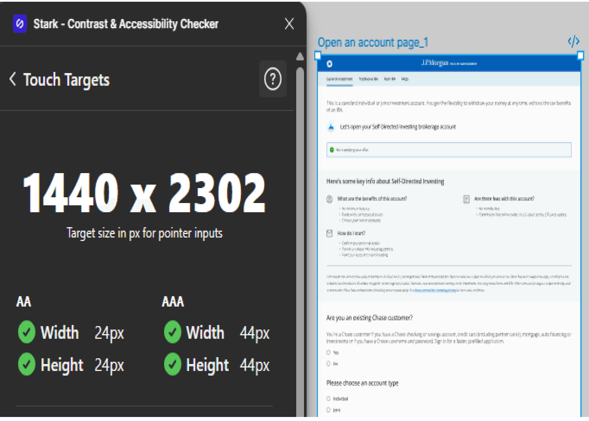 The result was that all the UI screens, successfully passed the three accessibility checks.